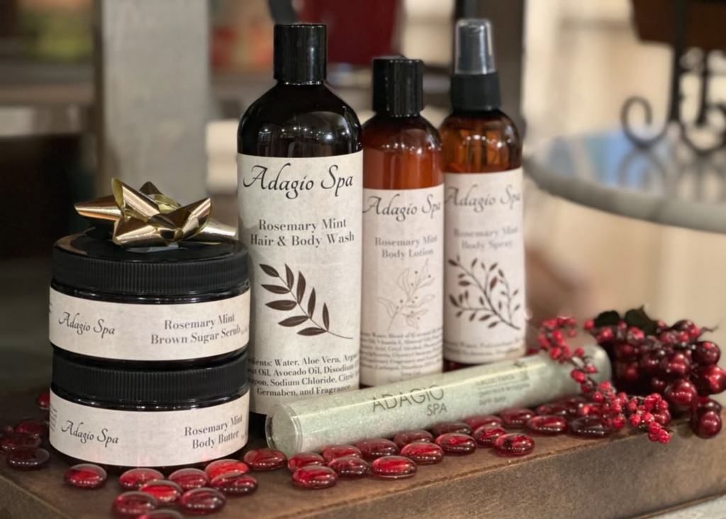 At Adagio, we offer products ranging from beauty essentials, candles, soaps, jewelry, purses, and our very own Adagio Spa line! We are always getting new products in and rotating the look of the boutique, so be sure to stop by and check out all of our goodies! Can’t find a product you are looking for? Let a receptionist know and we might be able to order it for you! Contact the front desk with any other questions regarding the boutique.